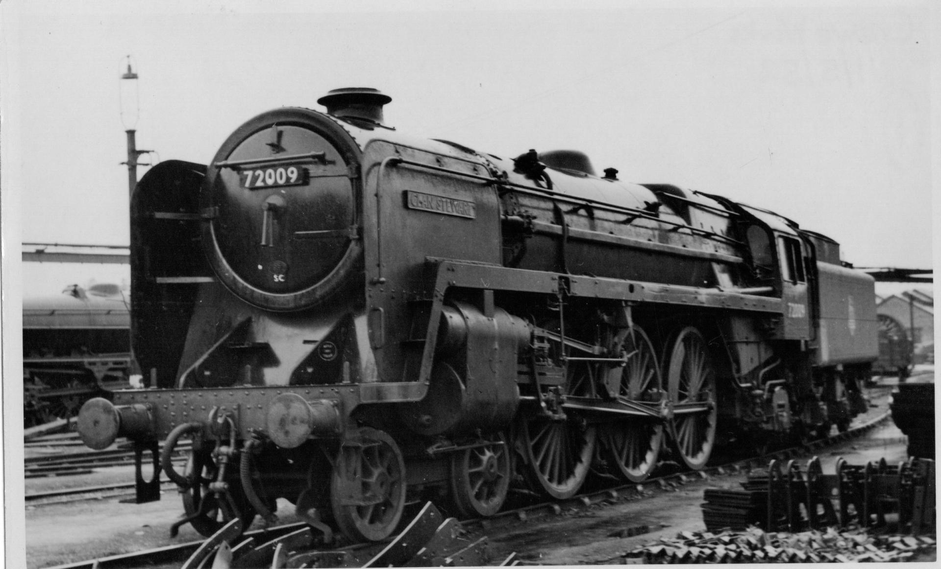 This photo is from a set donated by Howard Turner. 72009 at Crewe Works on 11 May 1952. Howard "spotted" 72009 at Symington on 3 August 1953. |