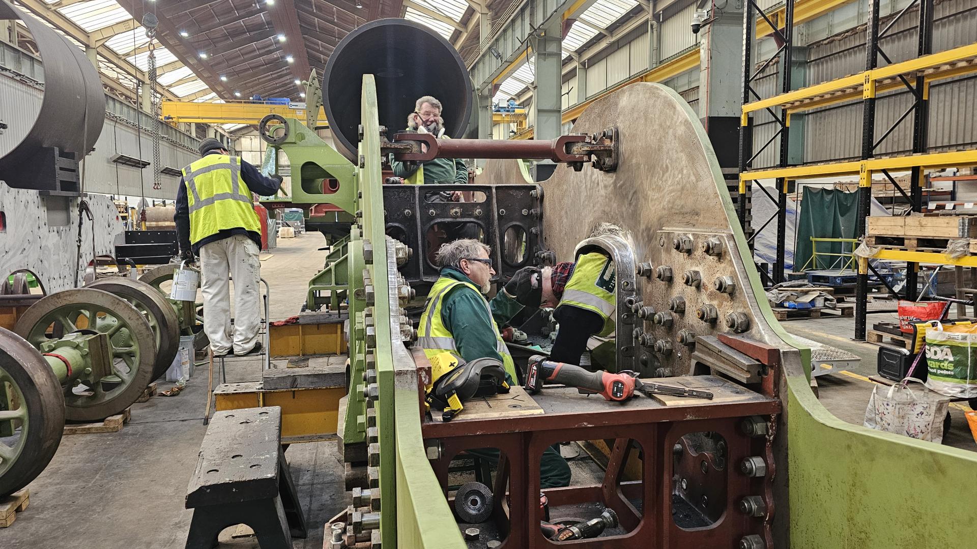 | A lot of work is going into cleaning up the frames and getting them painted for the April Open Day. All of the outside hornguide have now been smoothed down and painted. Here Ashley is applying a coat of primer to the right hand motion bracket. The nuts will be painted once a formal torque setting check is complete and signed off. | |