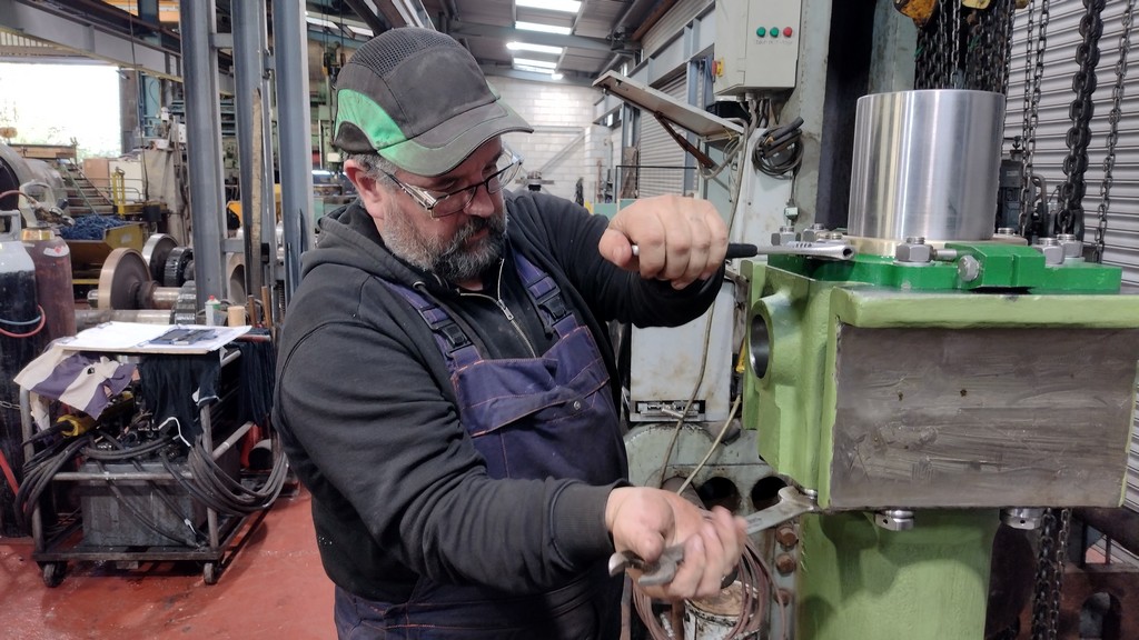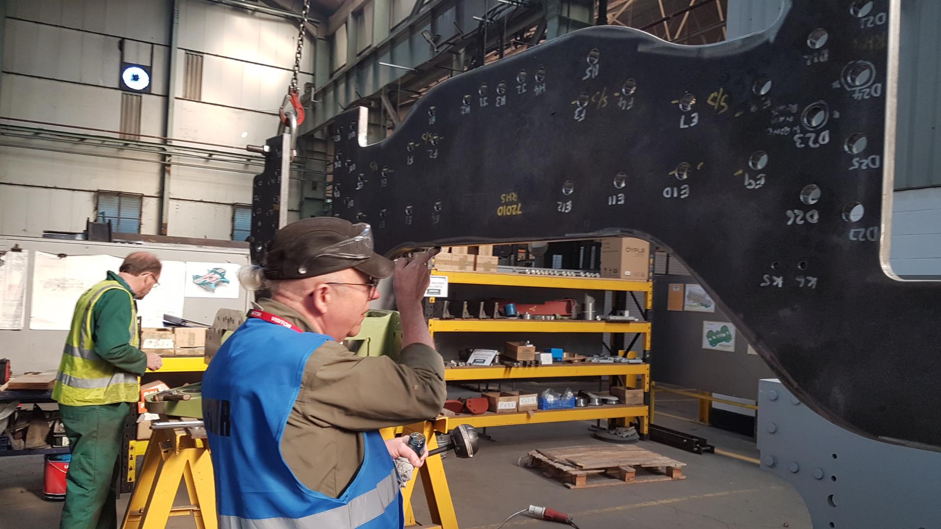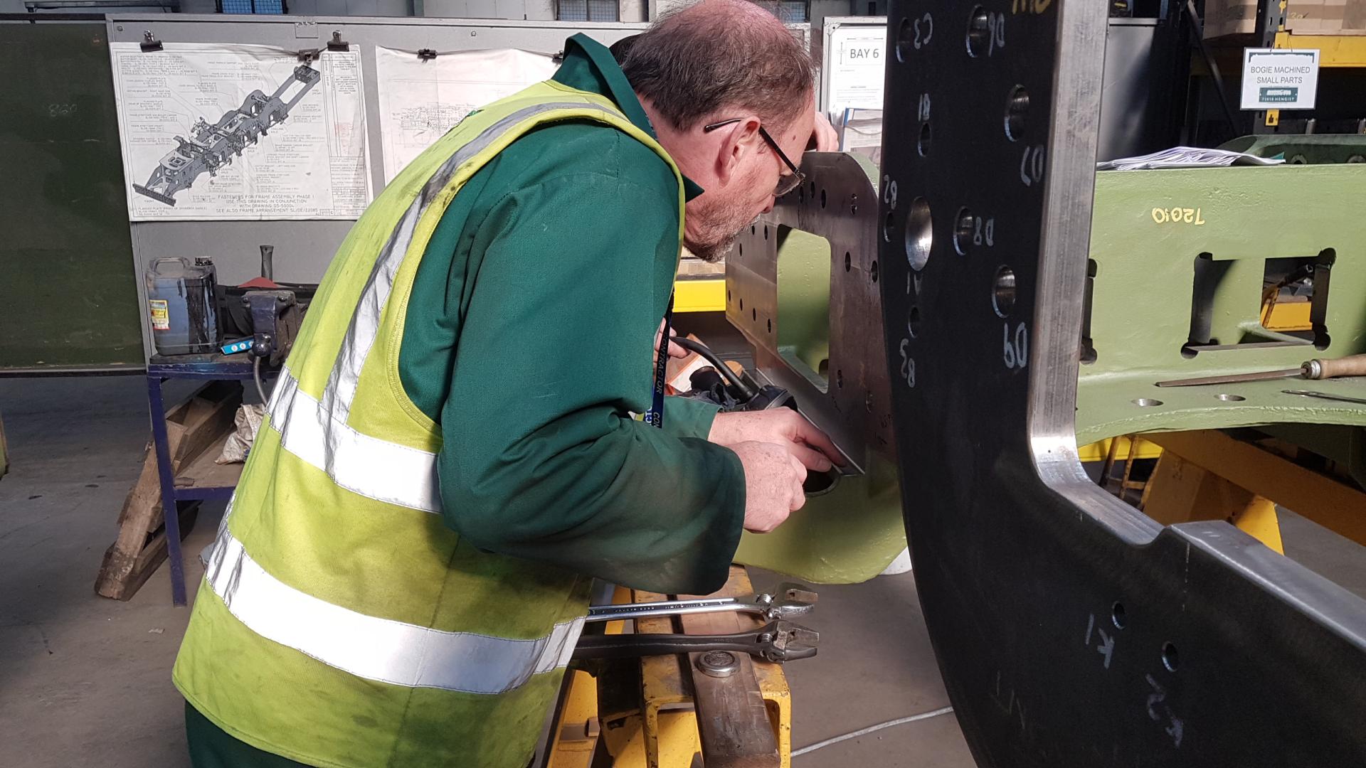 Back at CTL Seal, Geoff is using a large and heavy square to check that the axlebox faces are truly in line. They were! |