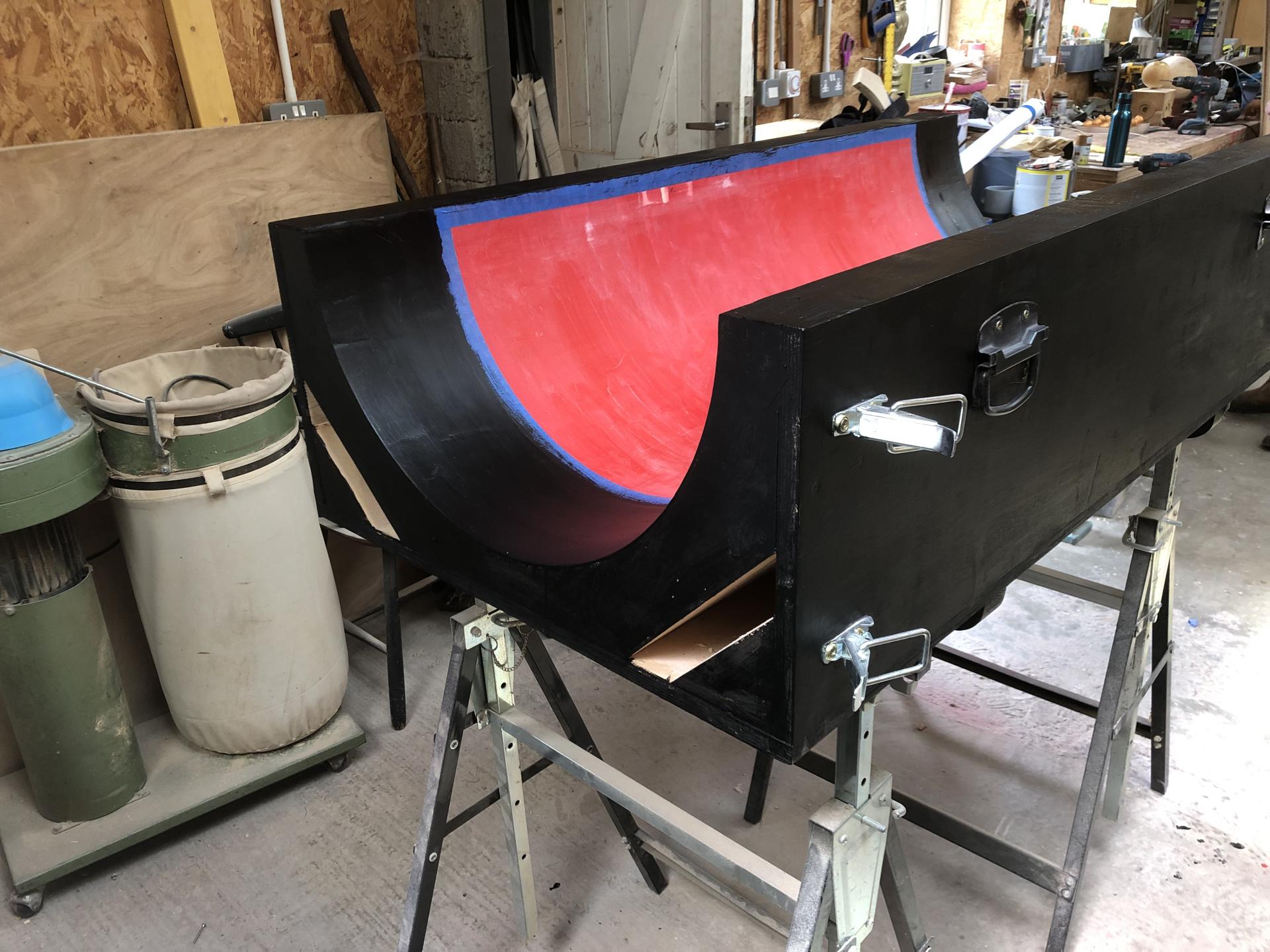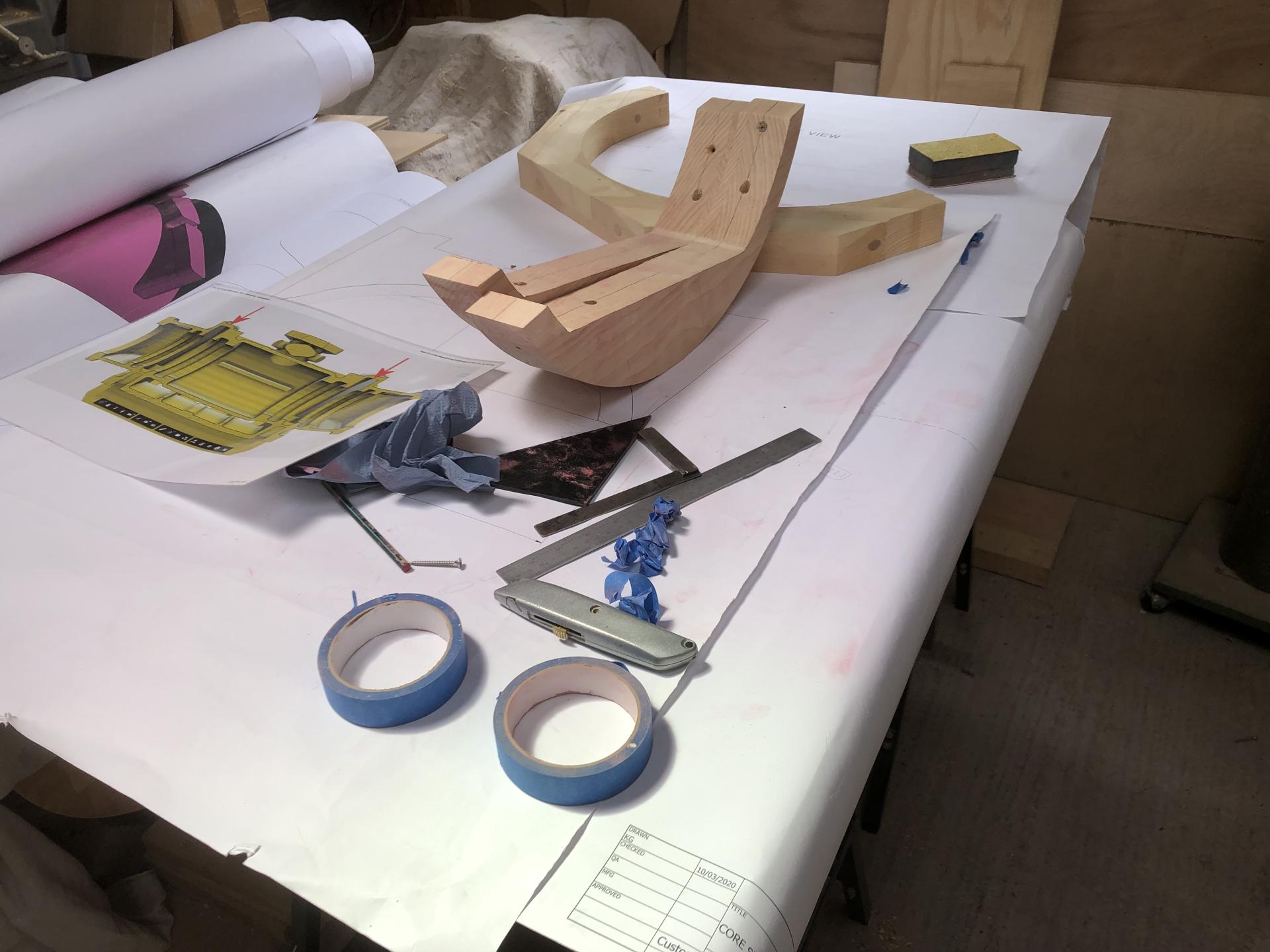 Tony says "This will take the lines of the motion cylinder core box (mccb), routing solid sections of timber instead of using pliable mdf or other materials. In the steam chest core box case this timber will be birch ply. I also want to use the same method as the mccb by only using one main box with the unequal section exhaust channel core sections added separately." |