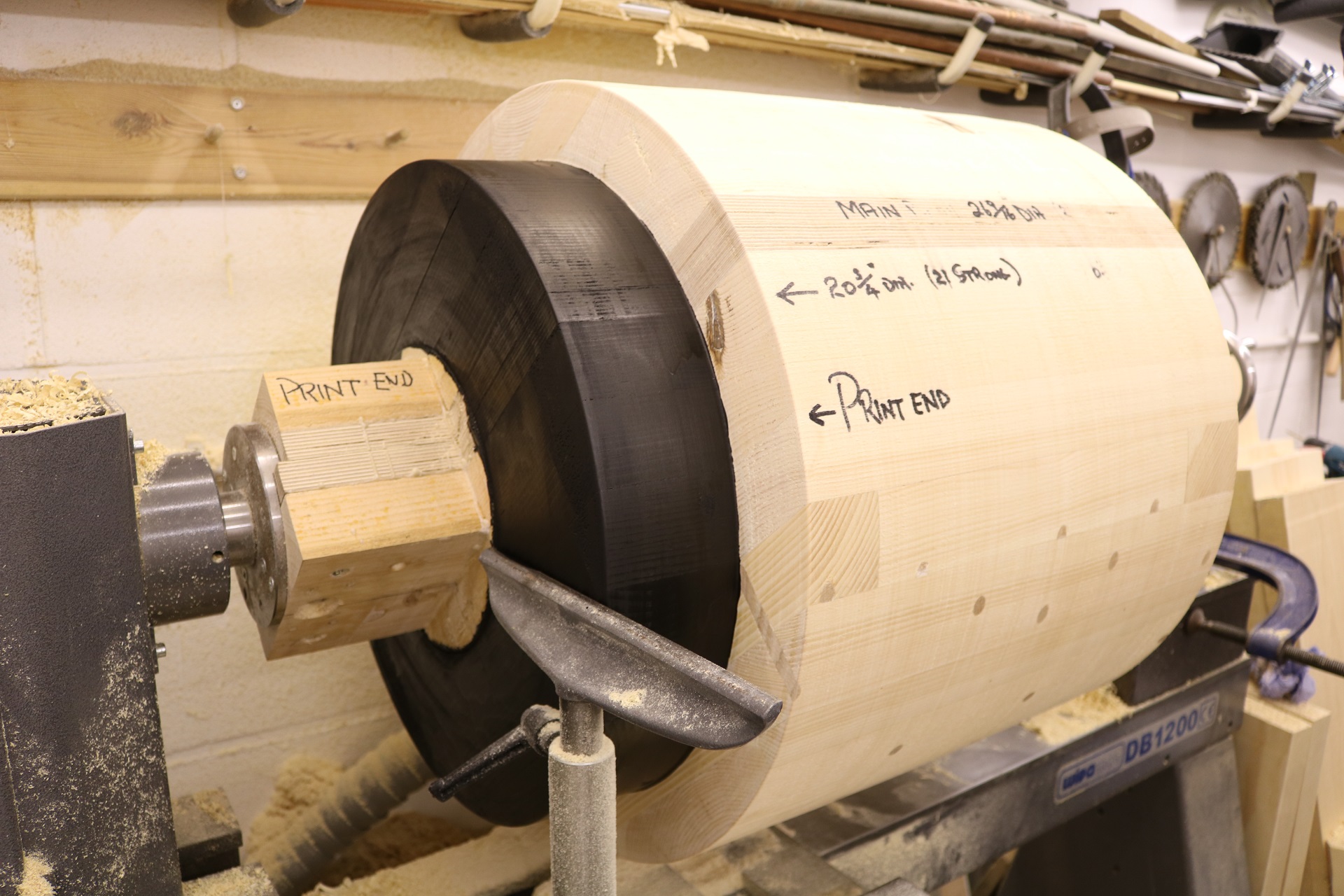 Turning has started on the first half of the motion cylinder pattern. Tony says