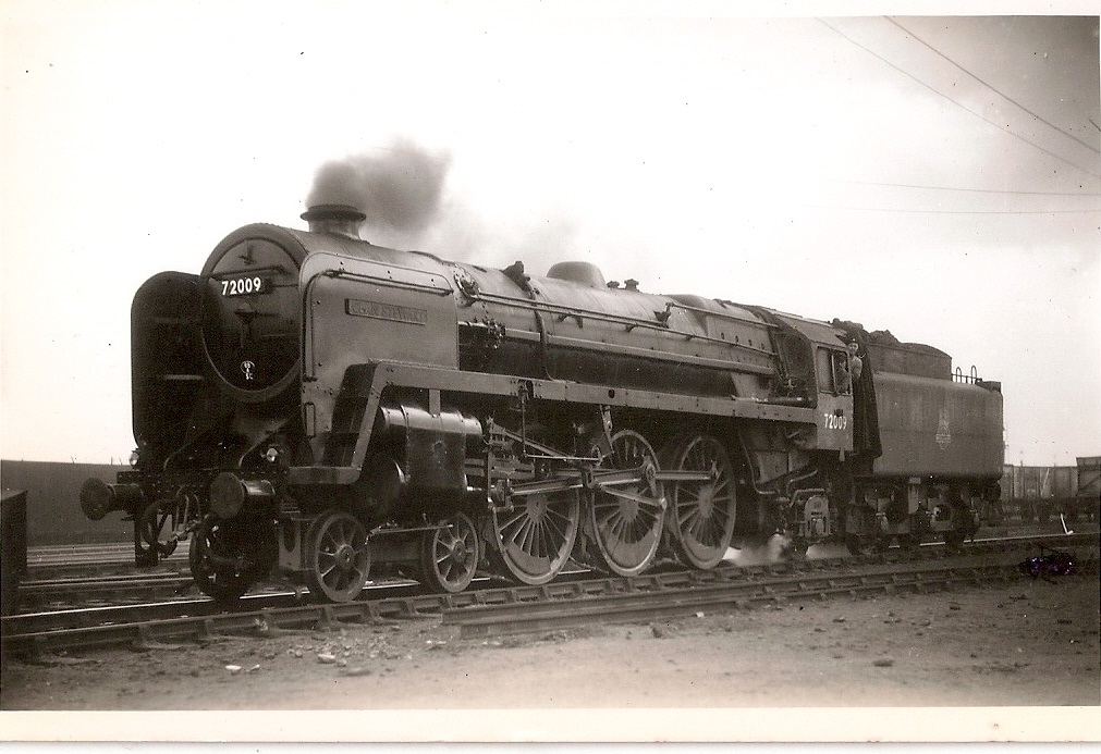 This photo is from a set donated by Howard Turner. 72009 at Crewe Works on 11 May 1952. Howard "spotted" 72009 at Symington on 3 August 1953. |