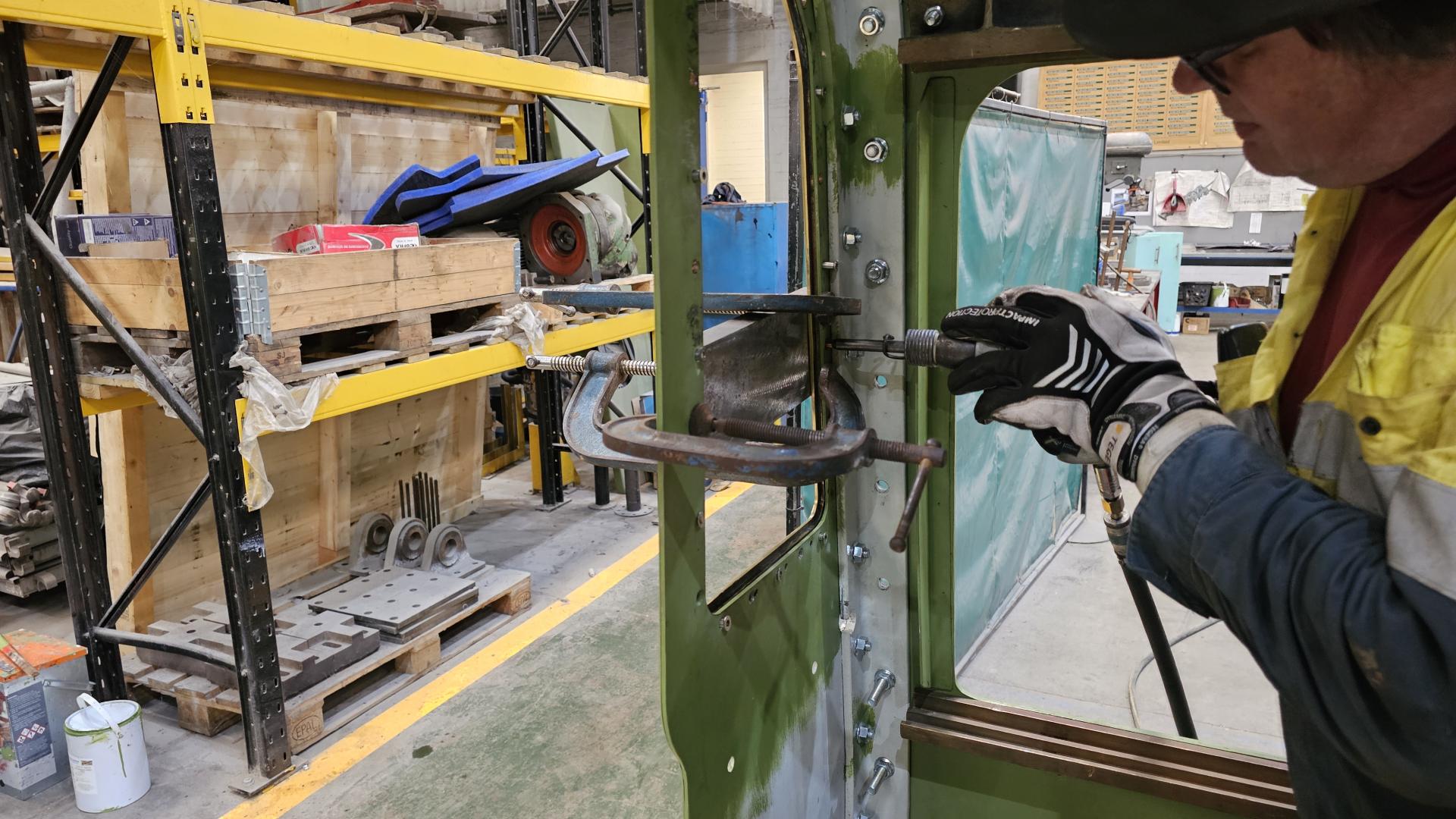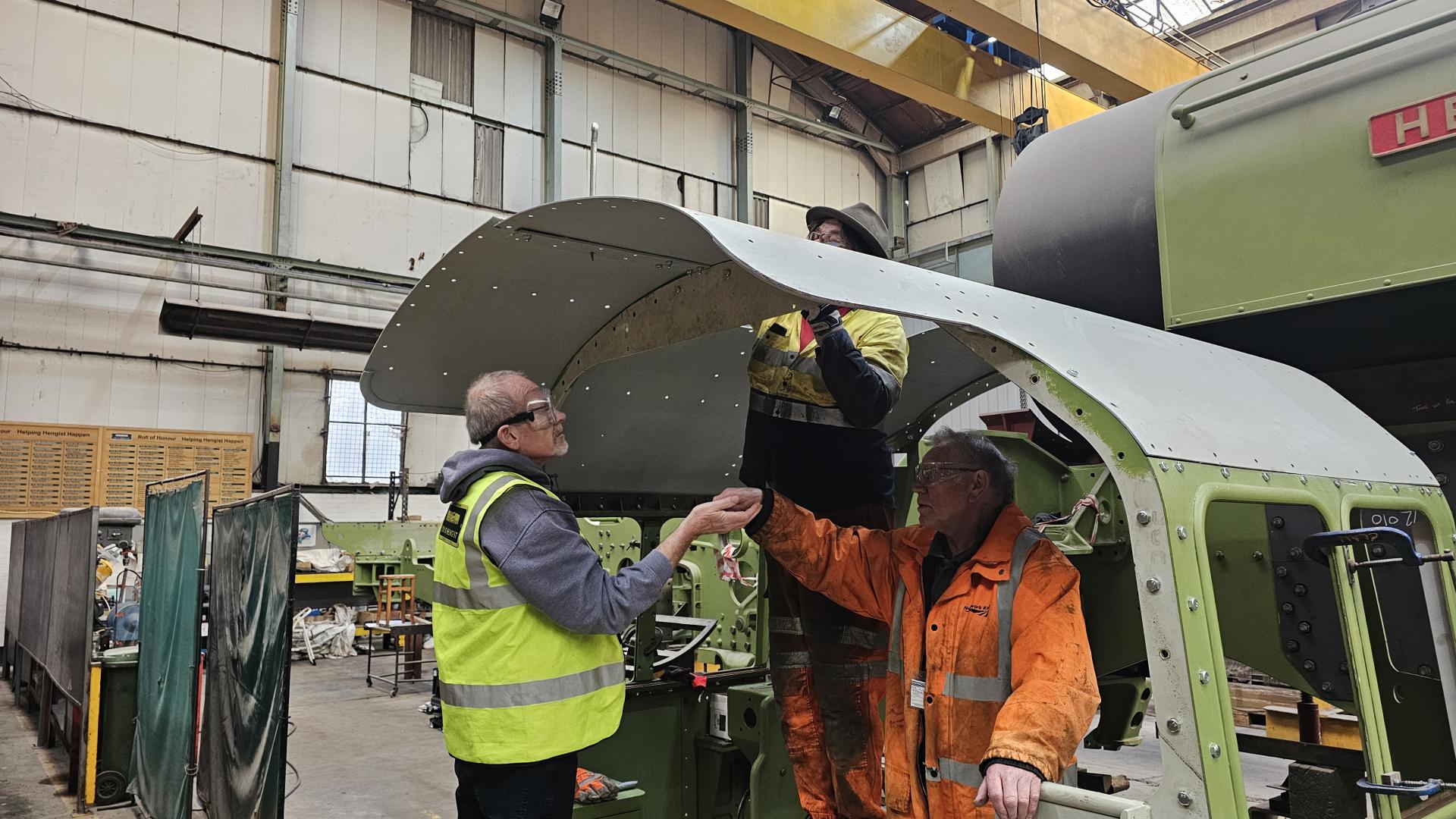 The cab roof was despatched to Brightstar Shotblasting and Coatings in Sheffield last week for blast cleaning. It had spend a while out of doors at Quorn and then at Diamond Engineering (CTL Seal) so it needed a bit of TLC. It was returned to us today and was promptly fitted to the cab frame.