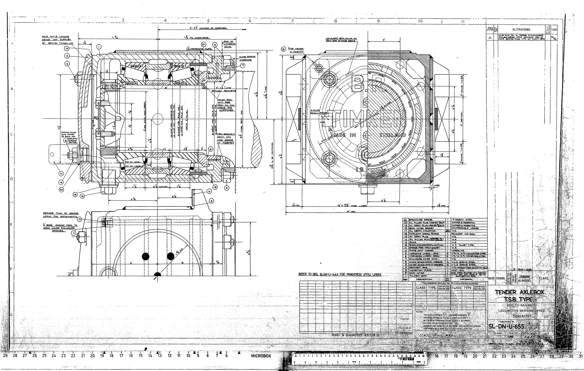 The axlebox is an outside bearing axlebox (Outside the wheels as opposed to the inside axleboxes fitted to the bogie and coupled wheels). The axlebox contains a pair of Timken taper roller bearings.