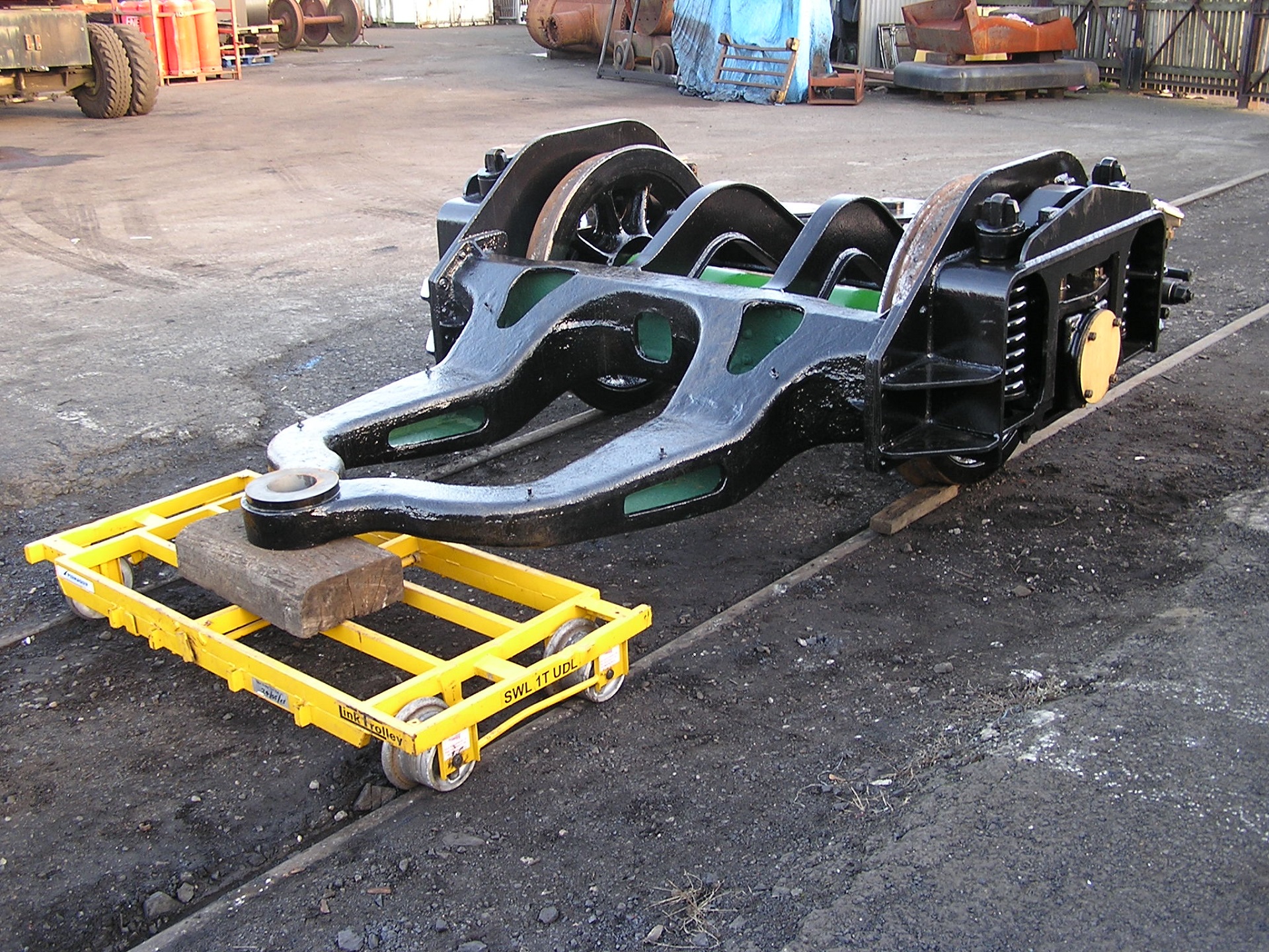 The Class 6 Clans and the Class 7 Britannias were fitted with an all fabricated pony truck frame with leaf springs. The fabricated frame caused problems as cracks were experienced around the pivot (see Britannia by Philip Atkins Chapter 16). Also the leaf springs gave a hard ride.