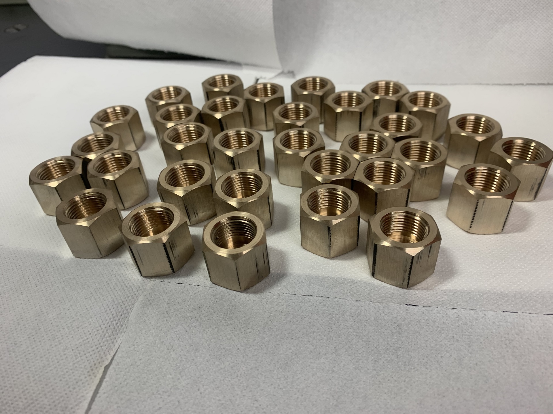 Ian C has just finished 32 pipework union nuts for 1/4" outside diameter grease pipes. These will be used on the bogie for the axlebox guide lubrication. All of the nuts were individually screw cut on the lathe, not using a tap! |