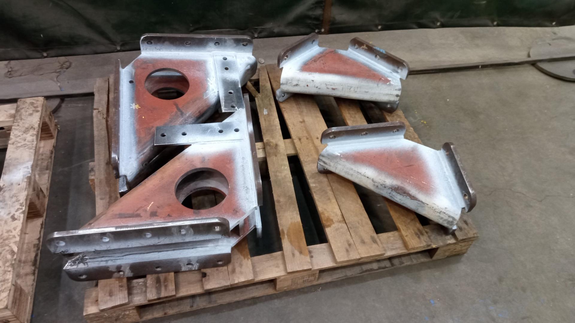 These are the 4 buffer beam gussets that fit behind the buffer beam and are riveted to the frames. The 2 on the left sit outside of the frames. Currently they are upside down and the front footsteps are bolted to the flat plate with 4 holes. The 2 on the right are the inside gussets. Initially the gussets came as a kit of bits with 4 flange plates and 2 half U shaped plates. They have all been welded together by CTL Seal. The final check will be for squareness and minor fettling may be required, if necessary. The next job will be to temporarily bolt the gussets in place and open out the fixing holes for the right size for riveting. |