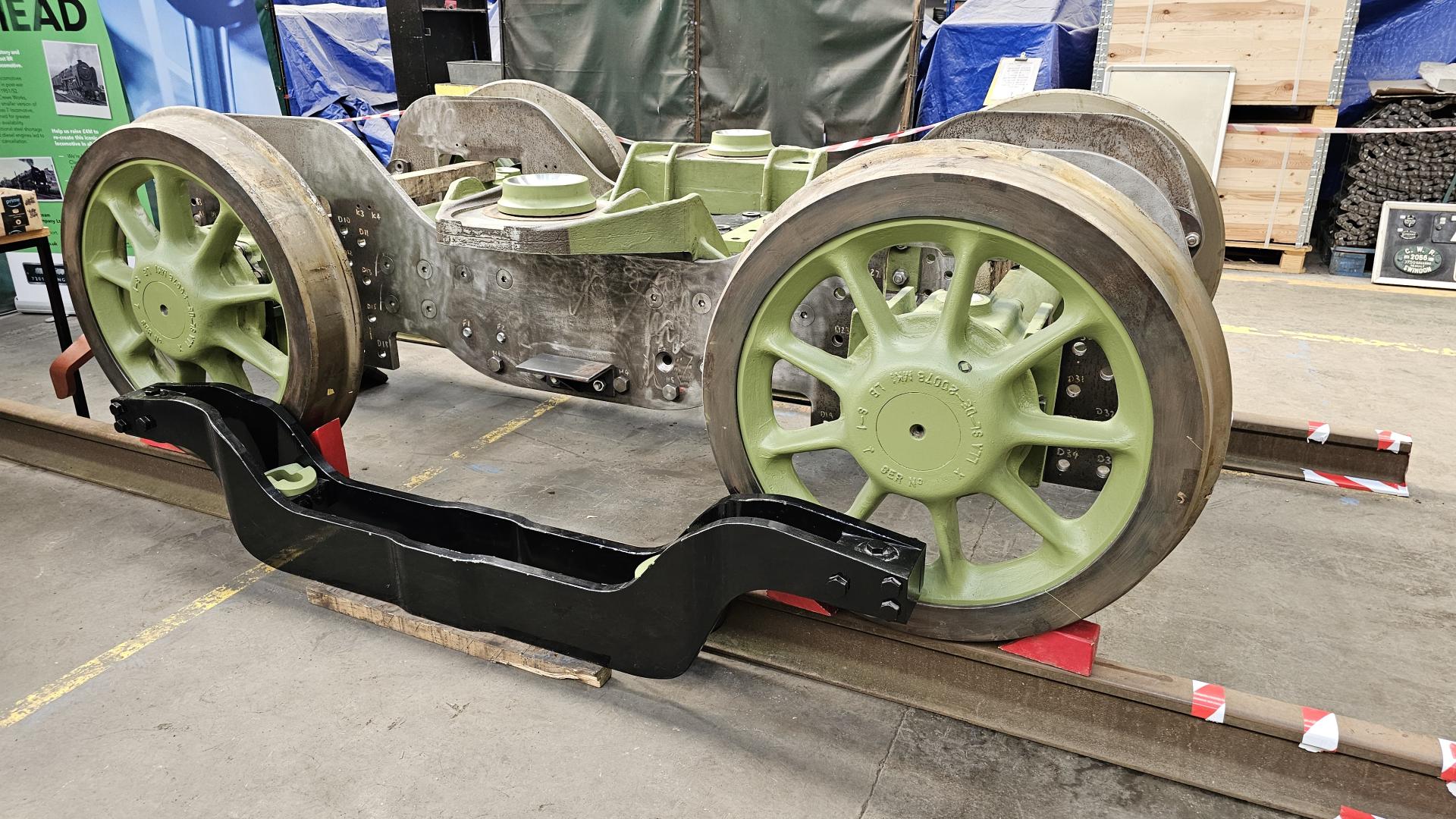 For the Open Day, we were able to assemble most of the bogie components. The final stages now are to complete the axlebox guides and liners. We need to drill/ream the bolt holes that fasten the guides to the frames and procure the fitted bolts. Then we can start a major dimension check where we will need to determine how to finish machine the liners so that there is the correct clearance between the faces of the wheelset axleboxes and the axlebox guide liners. | |