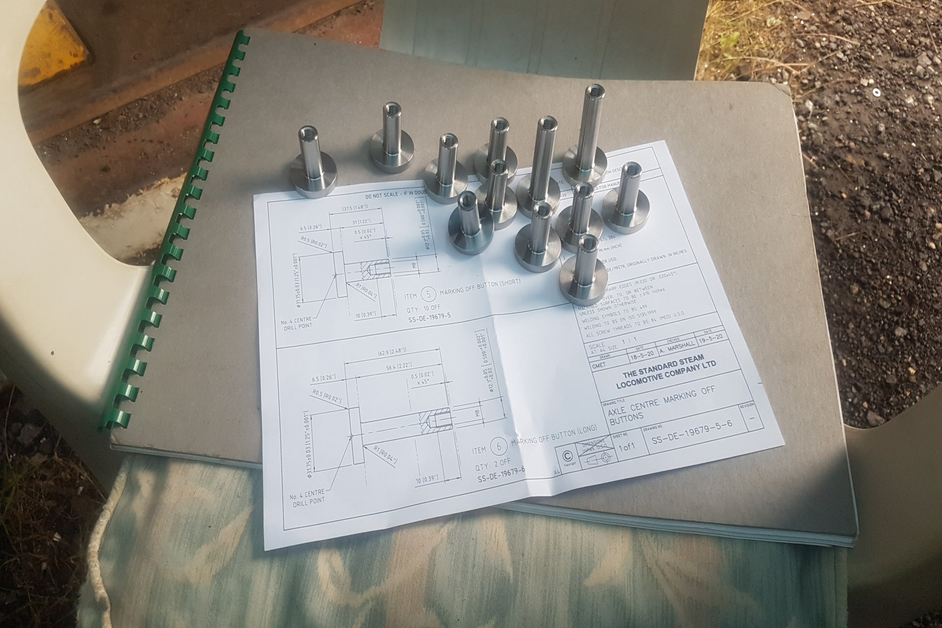 Into stock today are these axle centre marking off buttons. 2 are fitted into light drive holes in the frames either side of the axle and will be secured by a bolt. The small drill point on the other side of the button will be used as an alignment check to ensure that the axle centres are in a straight line. 2 are longer as they have to go through the thickness of the frame plates and the frame extension plates. |