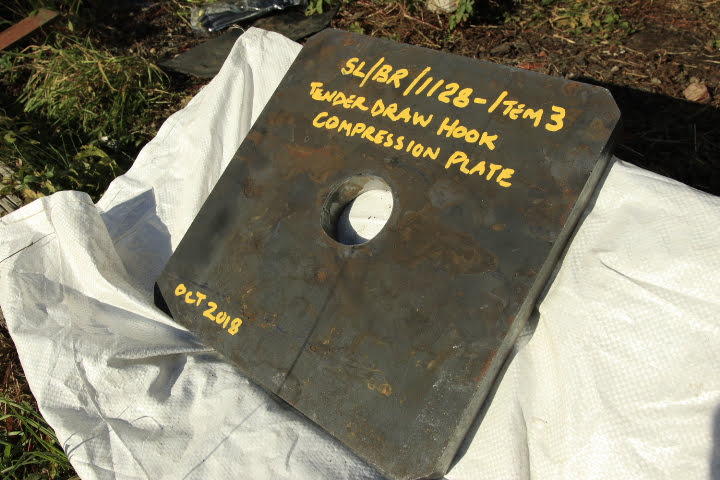 Pictured is the latest item, SL/BR/1128, Tender Draw Hook Compression Plate, Item 3. The part number SL/BR relates to the original British Railways drawing, with the BR part of the number indicating that the British Railways Brighton drawing office had been responsible for the drawing and the design of that item. The actual drawing SL/BR/1128 will show several items relating to the rear buffer beam and Dragbox, this being item 3 on that drawing.