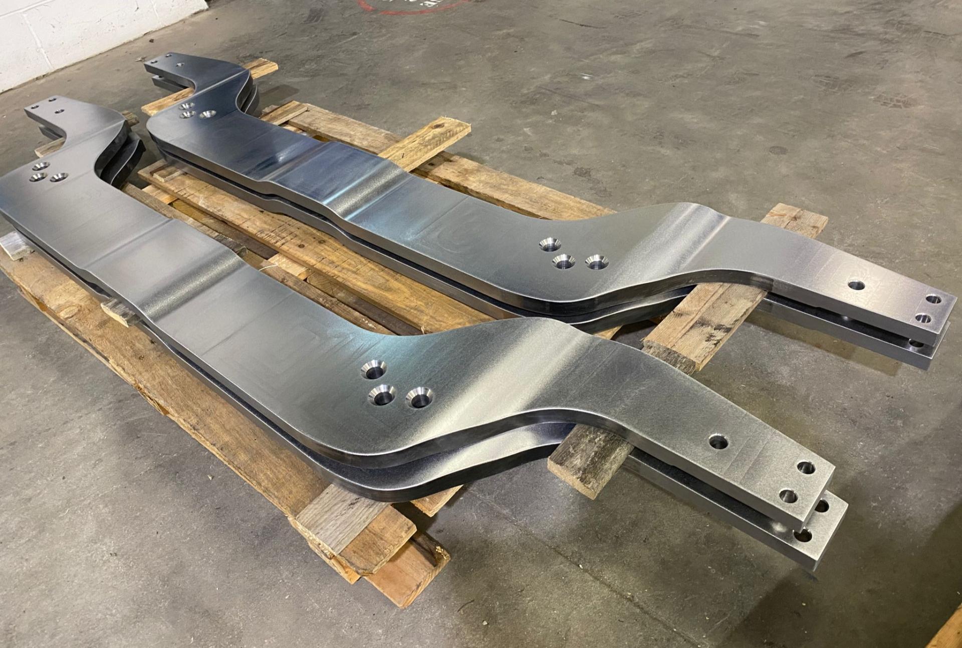 The main suspension for the bogie is via 2 leaf springs, each of which sits in a spring cradle that runs fore and aft along the outside of the bogie frame plates. The ends of the spring Cradle sit in cups on top of the axle boxes. Tyler Bros have sent us this photo of the plates which will be delivered to CTL Seal. You can also view a video here. |