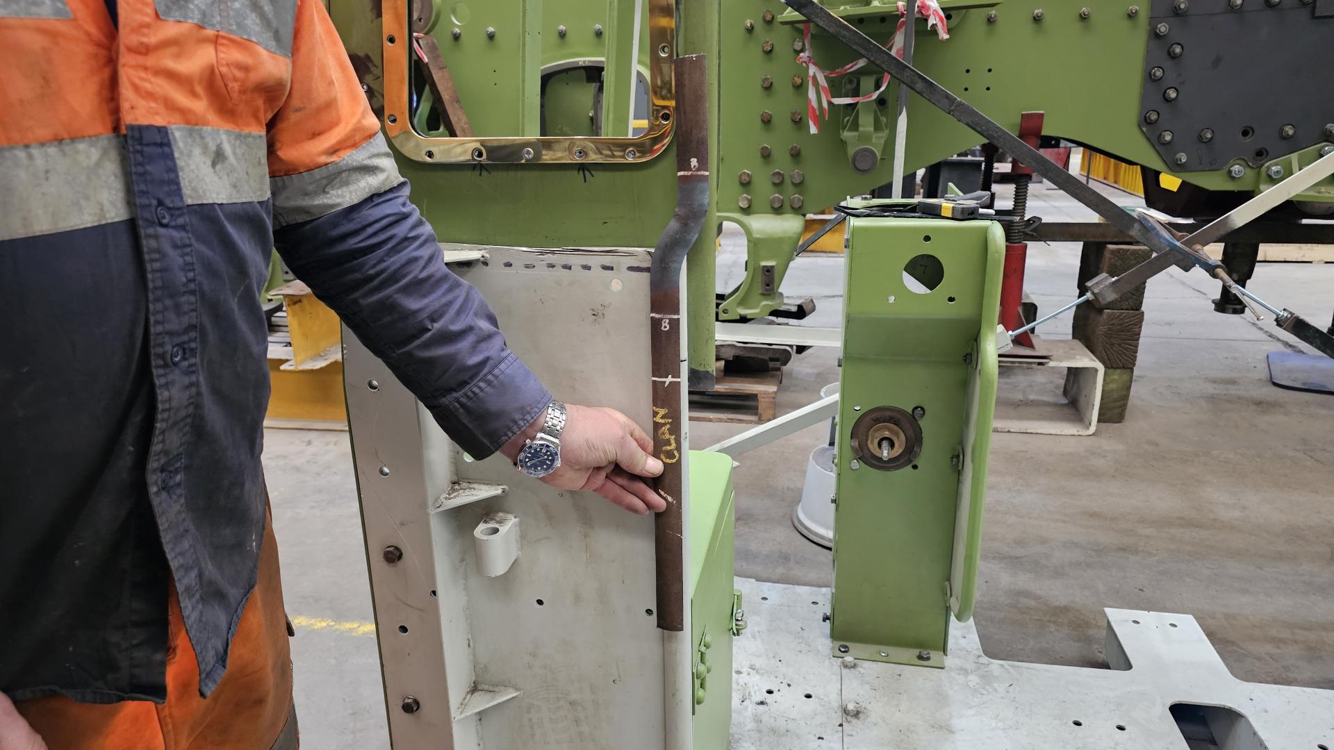 The hind covers now need to go into store. Before storing, Ashley and roger applied some primer to the outside, non machined surfaces. All other surfaces will be coated in preservative oil. |