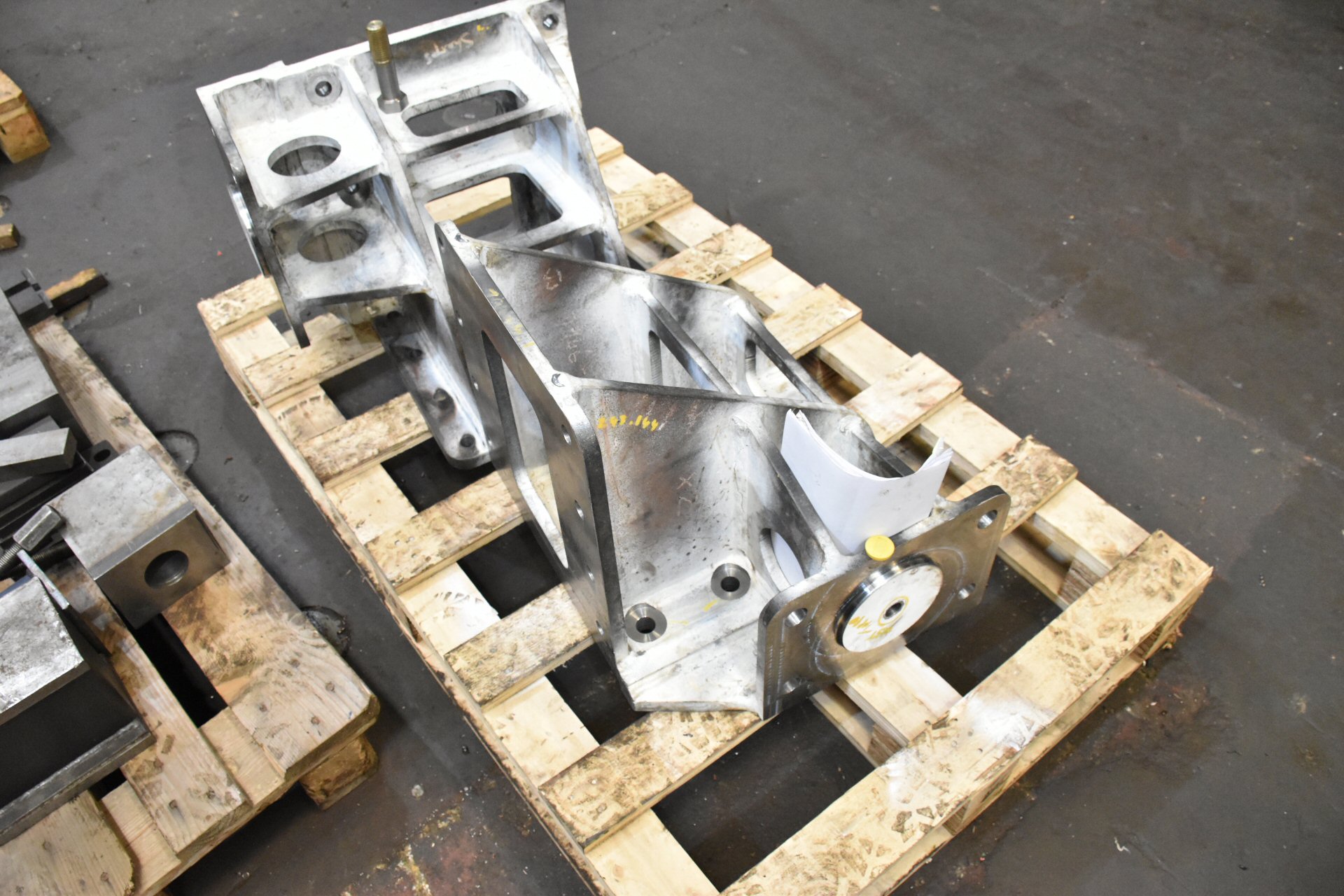 The hind beam gssets are now complete and are in the inspection bay at CTL Seal. The last 2 machining jobs were first to machine the boss for the pony truck bolster - seen nearest the camera. This is the base of the gusset. The second job was to spot face 5 mounting holes on each gusset. These were very close to the plates and we wanted to make sure that the bolt heads sat squarely. After inspection, these will move to the Assembly shop |