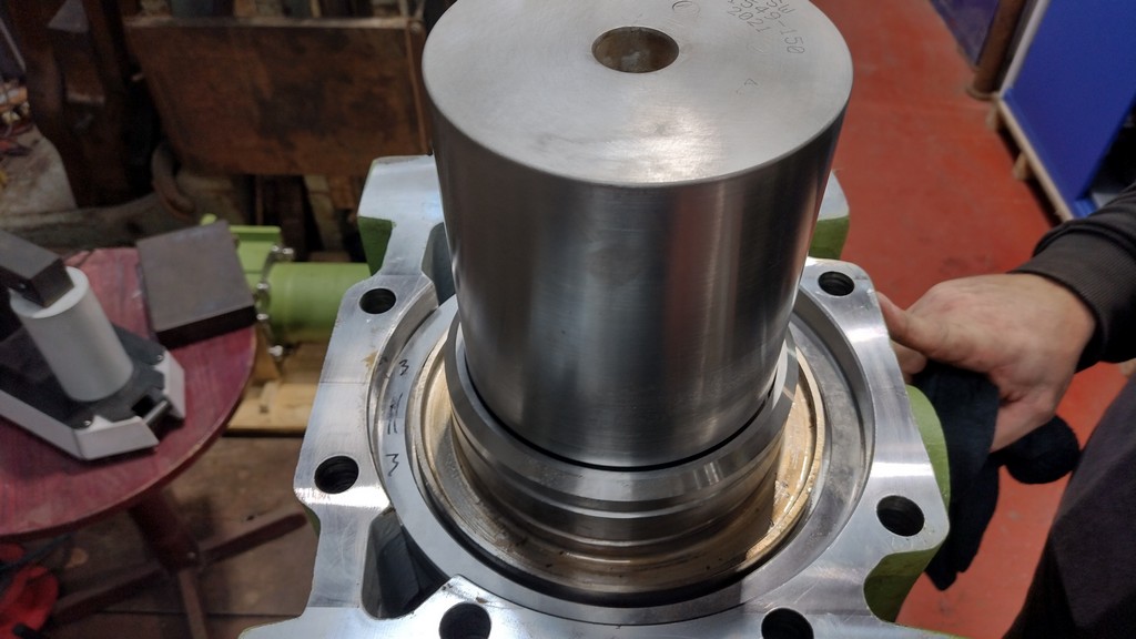 The correct end float has to be set up on the bearings. Here Tony Wilson for SDRE is checking clearances to calculate how much to grind off the adjustment ring to set the end float |