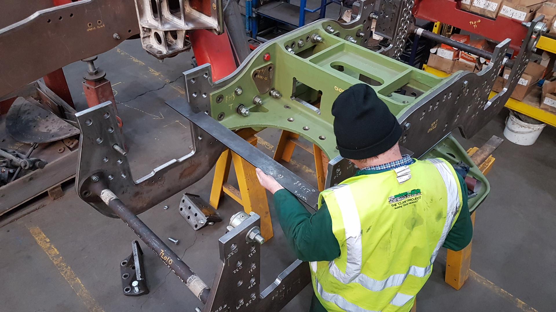 The left hand bogie bolster has been fitted to the frame today. We will need to start drilling and reaming out the bolt holes next week.