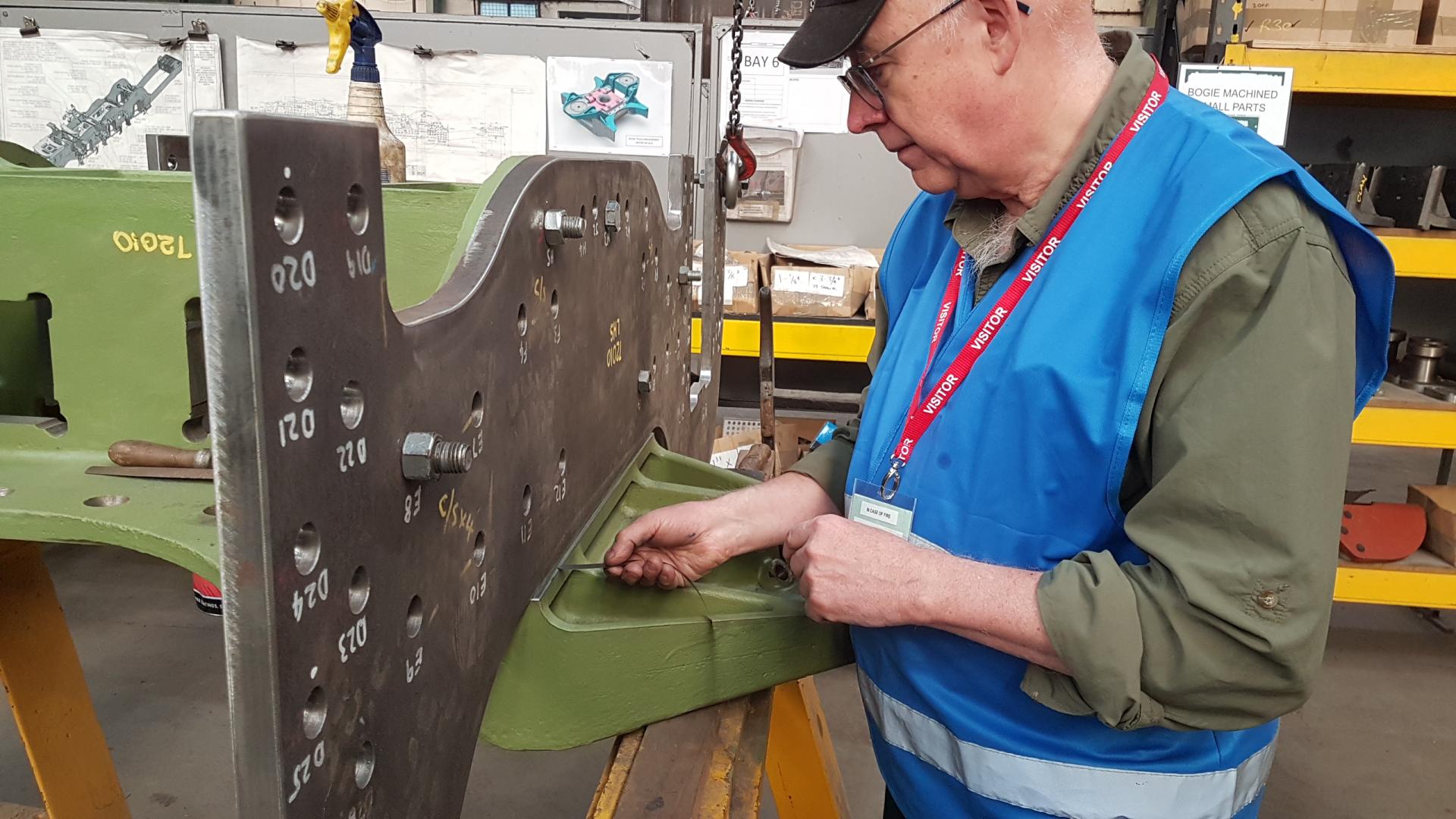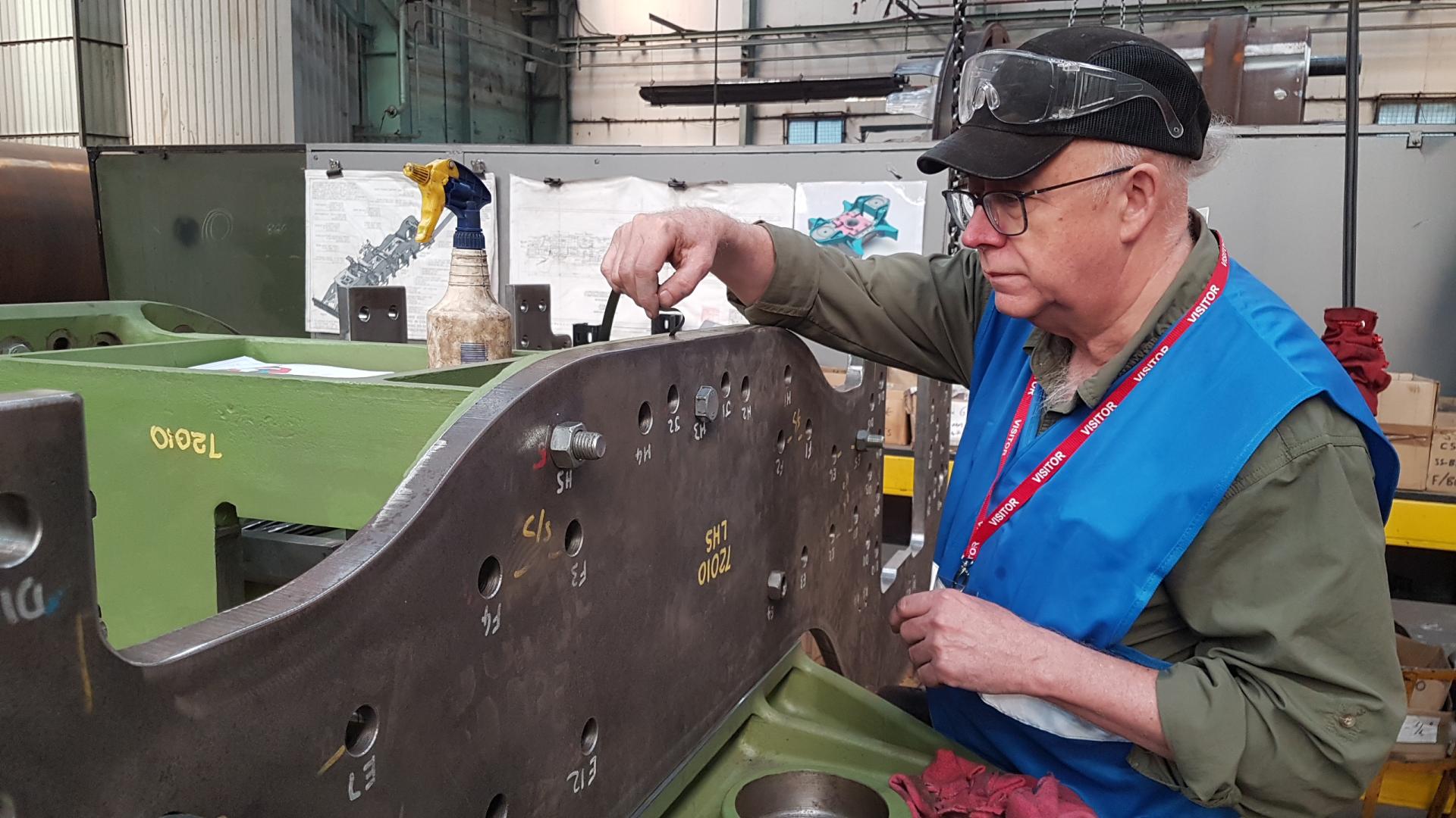 Back at CTL Seal, Geoff is using a large and heavy square to check that the axlebox faces are truly in line. They were! |