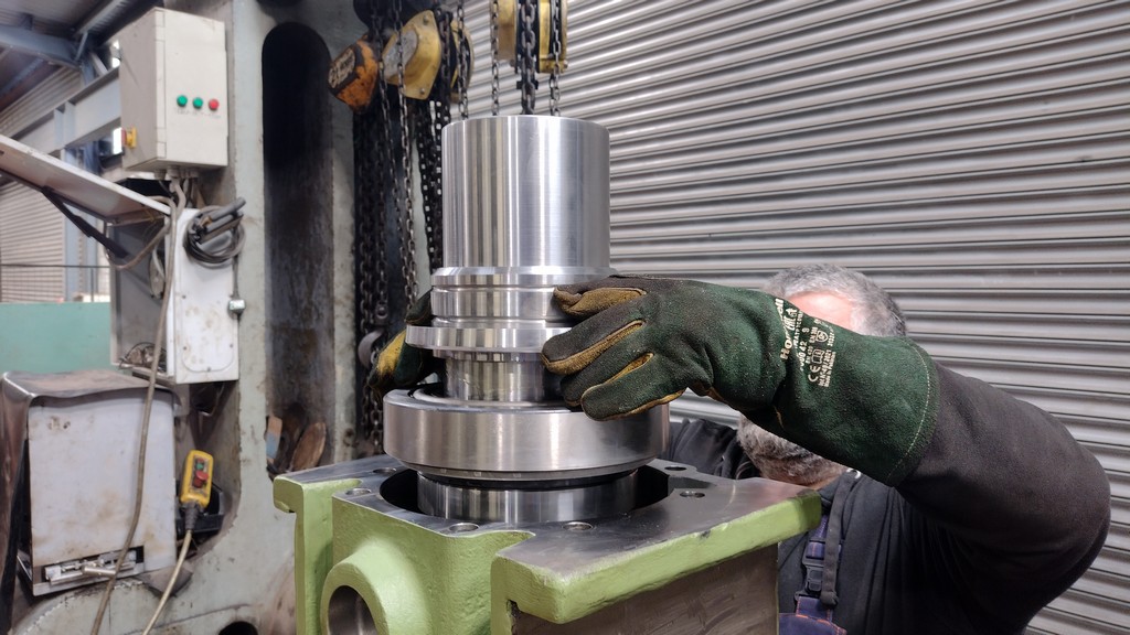 Down at South Devon Railway Engineering, work started on assembling the cannon boxes. An induction heater has been used to warm and expand the bearings so that they will slip easily onto the axle. |