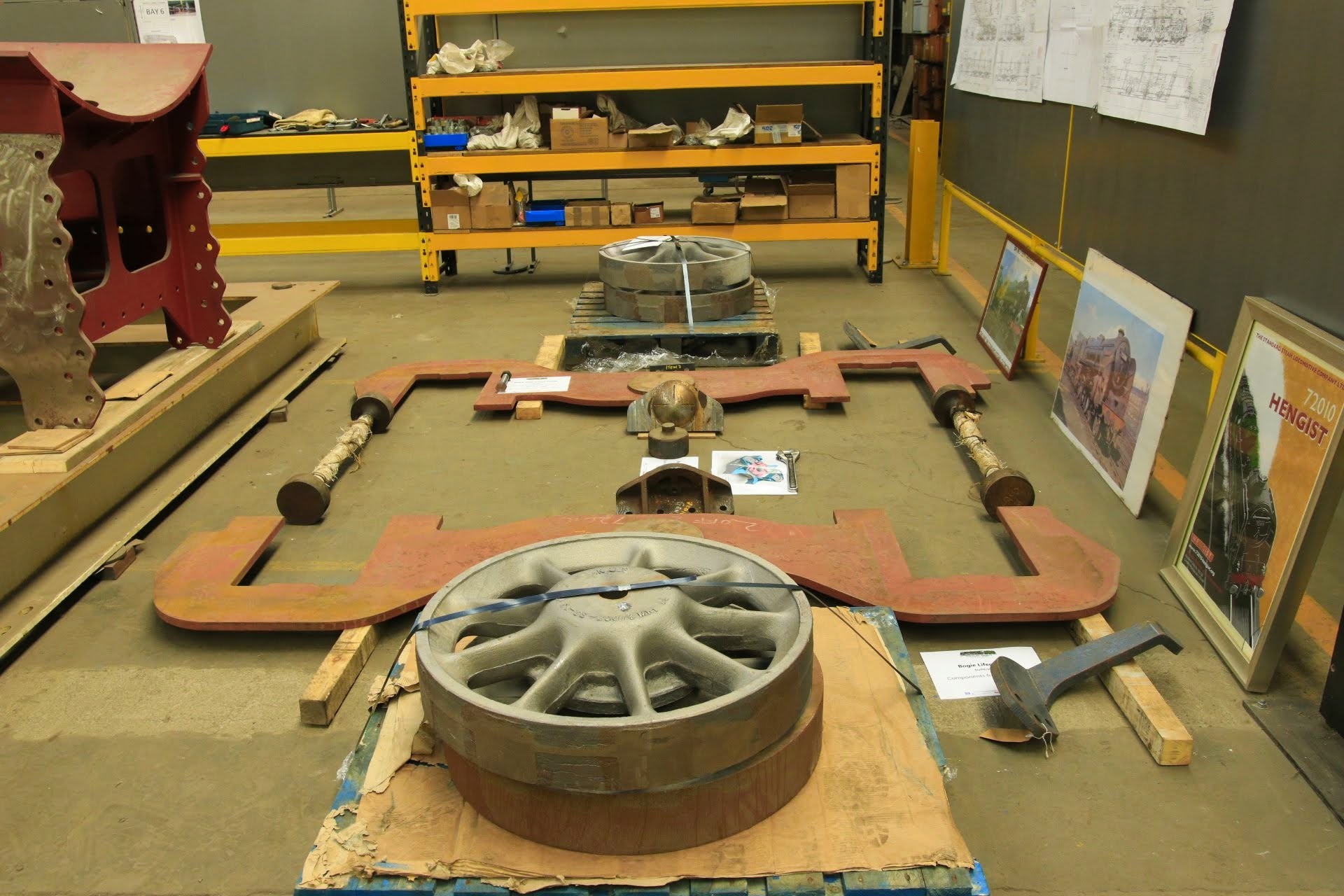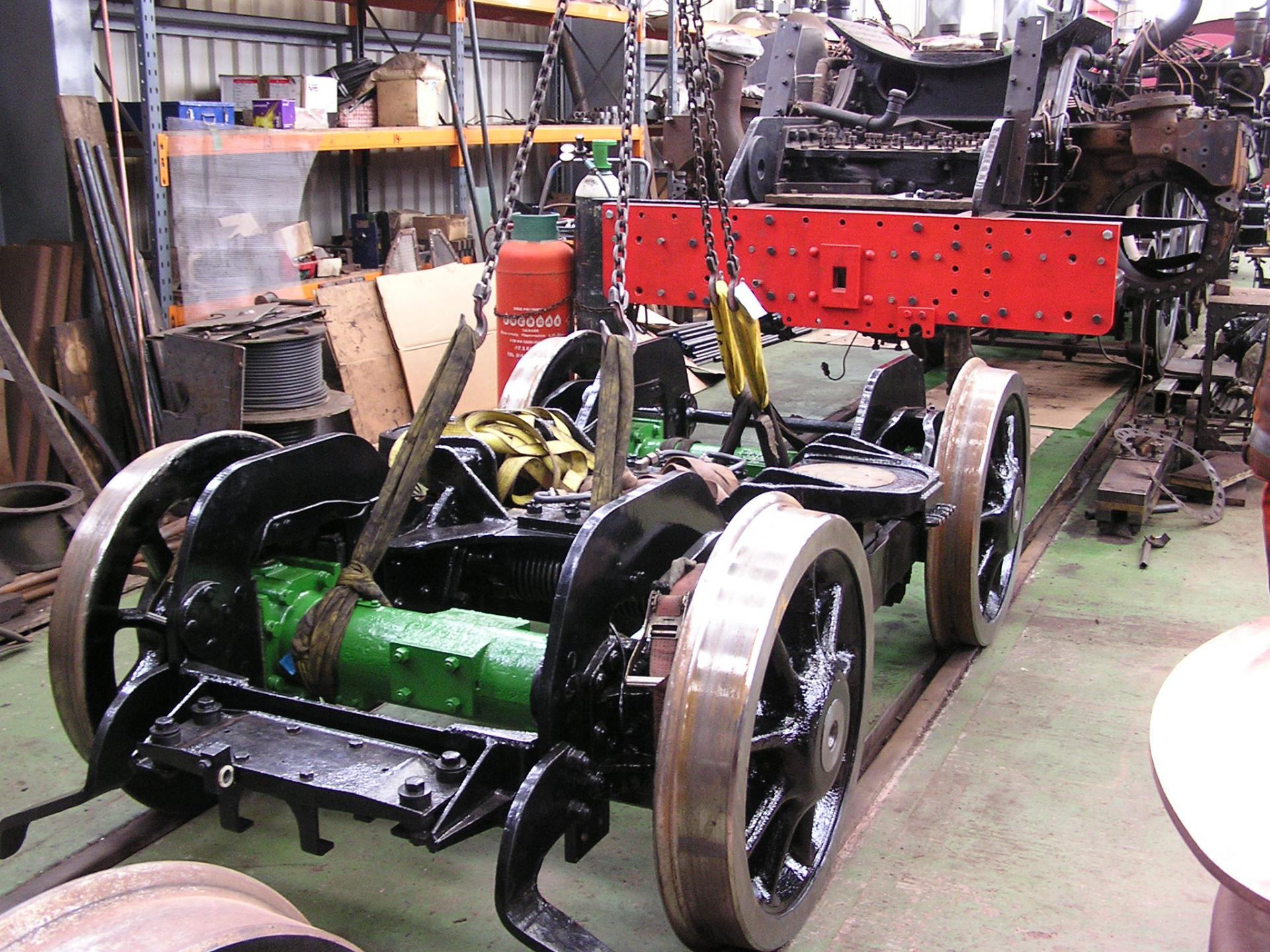 The front bogie in a Pacific class steam locomotive is a four wheel, unpowered truck. Part of it's job is to carry the weight of the front of the locomotive. It's more important job is to allow the locomotive to negotiate curves as the driving wheels are rigidly kept in line by the frames. The front bogie must not only be able to pivot around a central point but it must also be allowed to move sideways relative to the locomotive frames. This sideways movement must be controlled by heavy duty springs and the selection of these springs is critical to the ride of the locomotive. The bogie guides the locomotive into the curve and avoids placing undue stress on the flanges of the bogie wheel.