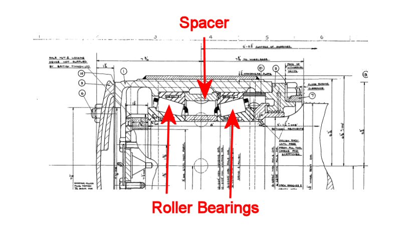 For the trailing truck and tender axleboxes, each axlebox contains a pair of opposed taper roller bearings, each bearing race being separated by a spacer. The width of the spacer is vital to ensure the correct end float of the bearings. Anyone who has worked on MGB wheel bearings will recognise the principle.