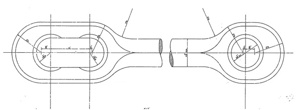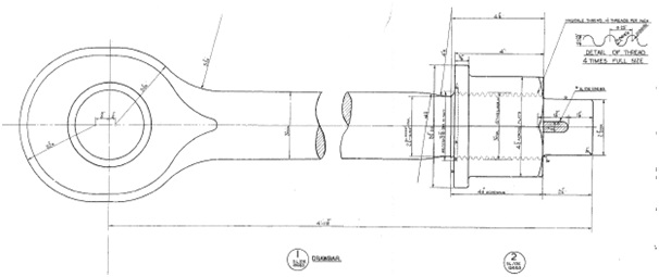 This is the drawbar for the Mark 2 drawbar system which is fixed by 2 vertical pins, one on the engine and the other on the tender to drawing SL/DE/20738. The oval in one eye is to allow some movement as heavy duty sprung buffers fitted to the front of the tender require movement to work.