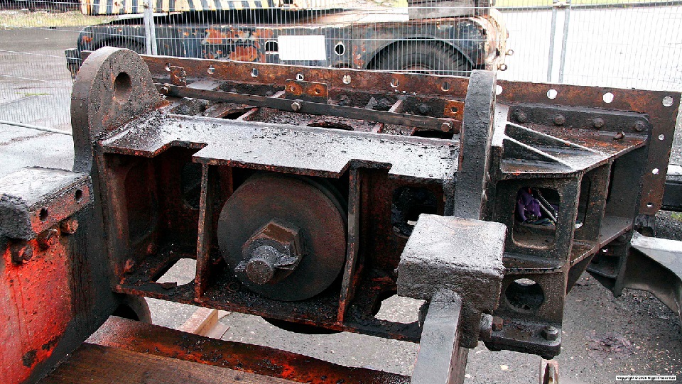 Compare this photo with the picture of the dragbox for the Mark 2 system above and the differences at the front of the dragbox are apparent. In the dragbox for the Mark 3 system, the drawbar extends horizontally through the front of the dragbox. This reverts back to the design of the Mark 1 drawbar system with a drawbar spring.