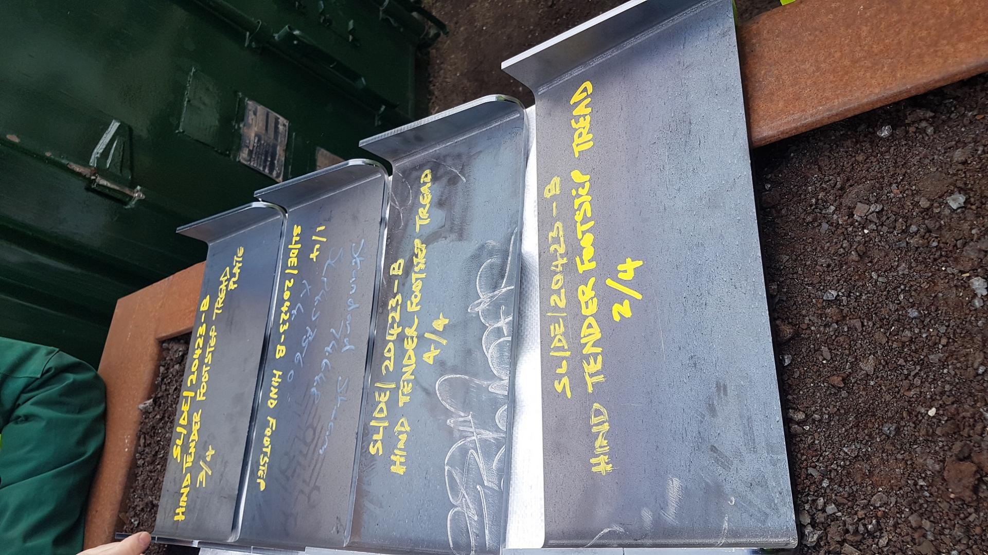 Here is a set of rear tender steps kindly sponsored by Ashley Shimwell, one of our members. These are the rear steps and will need to be welded to the vertical frames that we already have in stock. As well as the big bits, there's lots of small parts that need to be sponsored. If you would like sponsor a part please click this link to get in touch with us. |