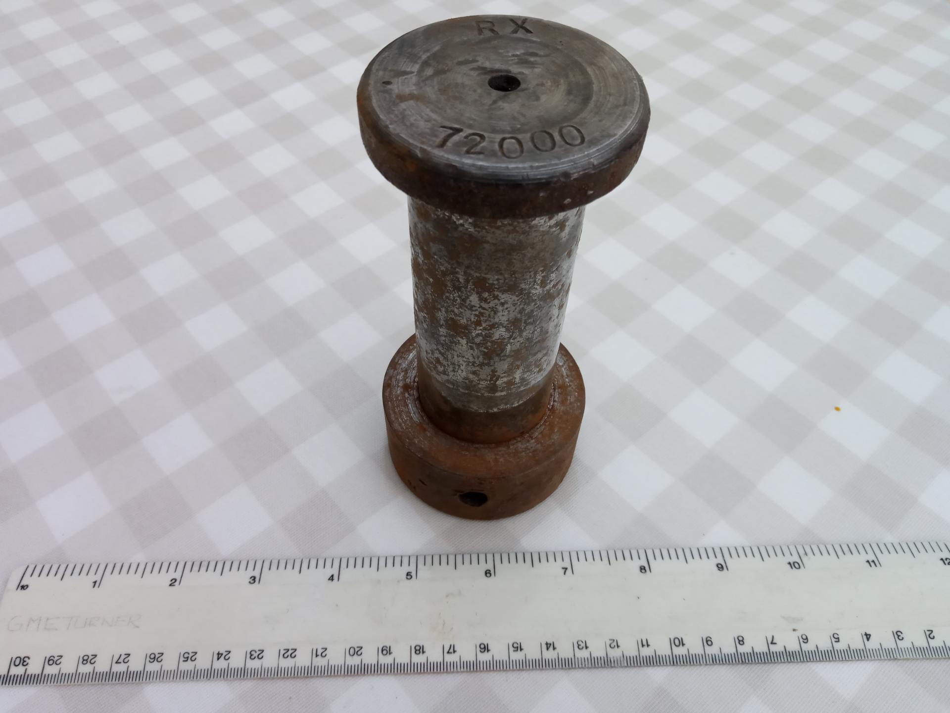 A part salvaged from 72000 Clan Buchanan, when it was cut up at Darlington works in February 1964, donated to the Clan Project by a railway enthusiast and photographer, Mr K. Moore of Holmfirth. Number 72000 was new into service on 29th December 1951 and withdrawn for Polmadie shed on 29th December 1962. In service for 11 years yet designed for a service life of 25 years! The part is a motion pin and collar from the valve gear. |