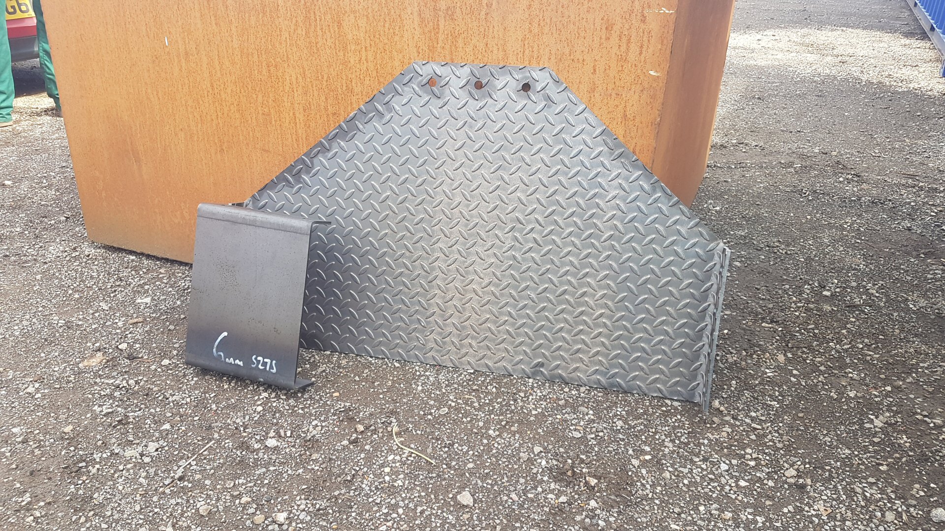 Originally both the Britannias and the Clans had 2 footsteps, one per side fitted to the inside of the frames below the smokebox door. The Britannias were modified to replace these steps with a single platform spanning the gap between the frames. This modifications was reported "to assist access for headboard mounting". We've decided to adopt this modification for Hengist as it's a much better platform to work from when working around the smokebox. The angled section for a Clan has to be different to a Britannia as the Clan frame comes down at a steeper angle. As a result this plate will have 4 fixing bolts per side instead of 5. The left hand part is the vertical support that supports the front of the platform. |