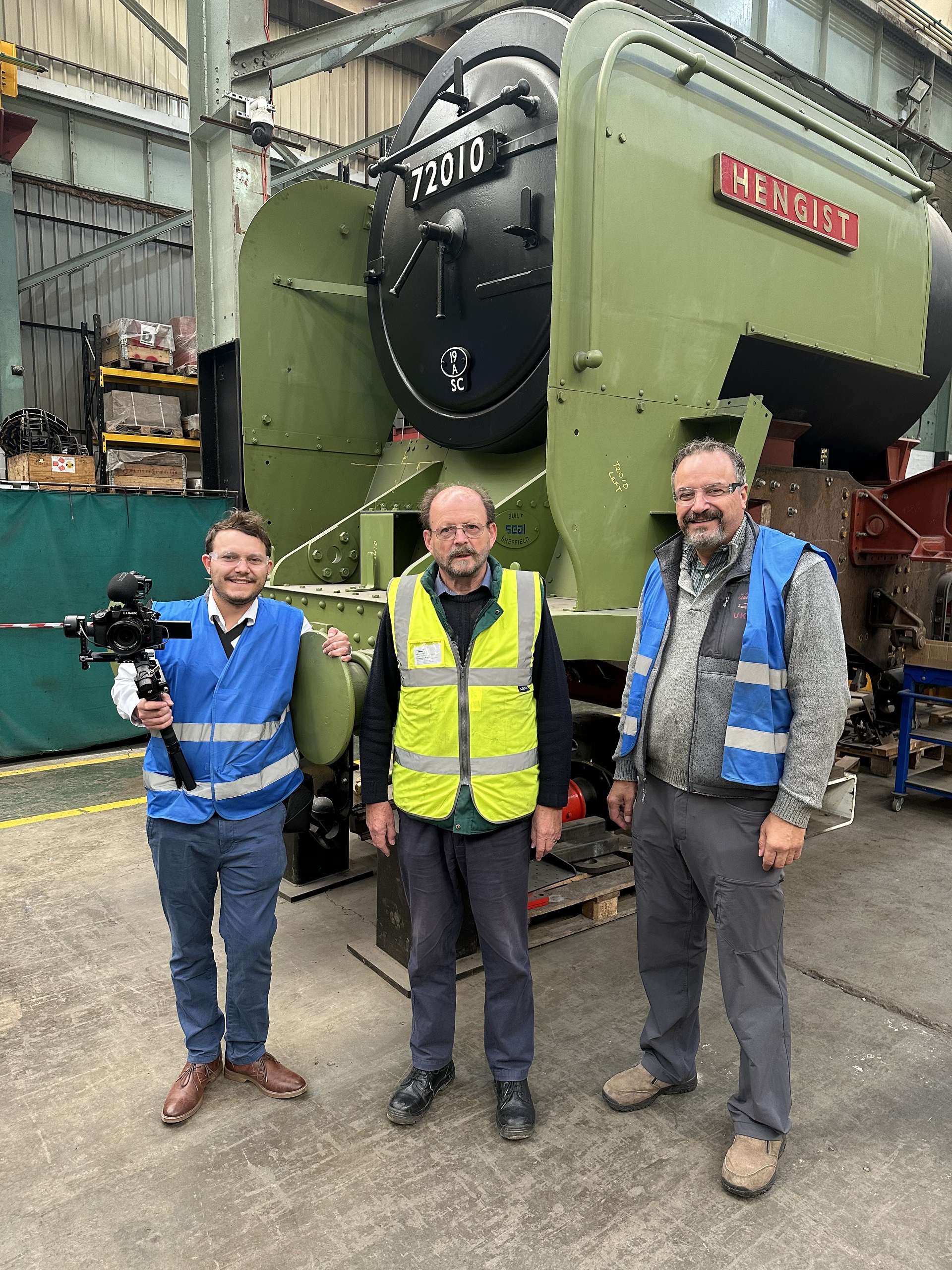 Durand, with camera and his father Dale were visiting the UK to film the Earl of Mount Edgecombe on a chartered steam trip. They had spotted the YouTube video about our Open Day earlier this year and were intrigued. They got in touch with us asking if they could see this new steam locomotive being built. Andy and Geoff were able to fit them in on the Sunday before they flew back to the USA on Monday 25th. They took some film of the loco and interviews to take back to their fellow railway enthusiasts back in America. |